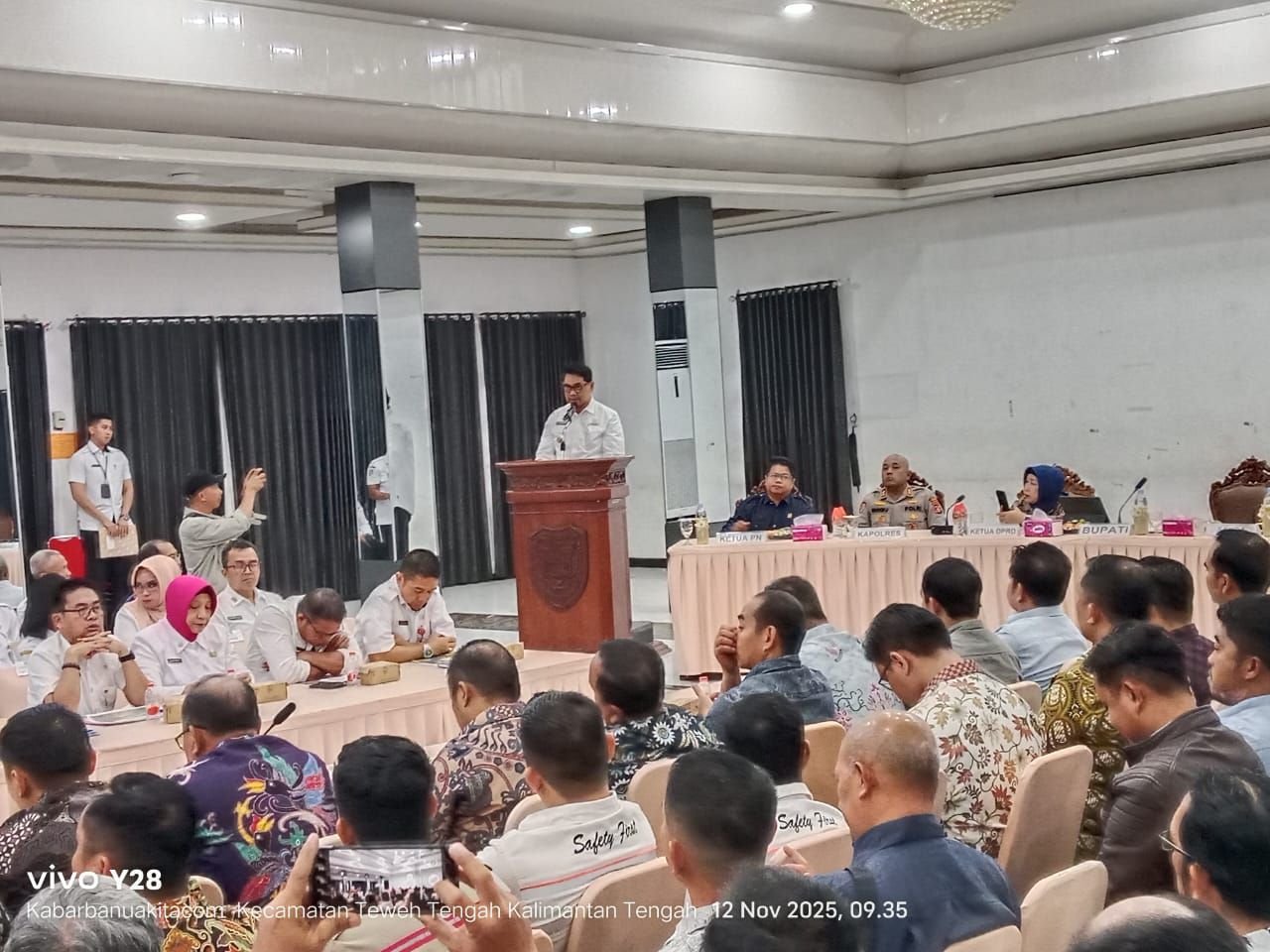 (Rakor) dan Sinkronisasi Tanggung Jawab Sosial dan Lingkungan Perusahaan (TSLP) serta Optimalisasi Pendapatan Daerah. Rakor berlangsung di Gedung Balai Antang Muara Teweh, Rabu (12/11/2025).