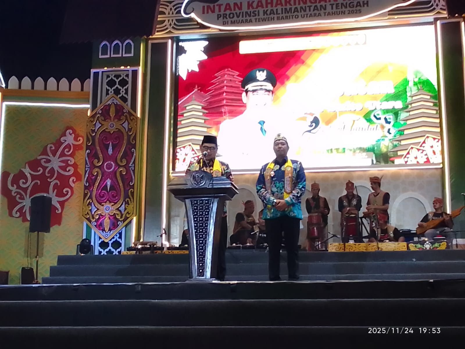 “Festival Tandak Intan Kaharingan (FTIK) yang ke XII Tingkat Provinsi Kalimantan Tengah Tahun 2025 yang diselenggarakan di Kabupaten Barito Utara ini alhamdulillah dibuka secara resmi oleh Gubernur Kalteng, H. Agustiar Sabran melalui Asisten I Sekda Prov. Kalteng, Ir. Herson B. Aden di Tiara Batara Muara Teweh, Alhamdulilah kabupaten Barito Utara menjadi tuan rumah lagi,” Ungkap dia.