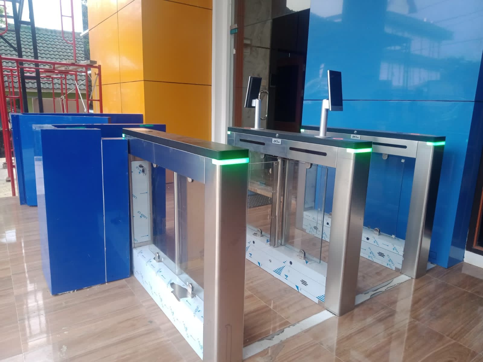 Di antaranya dengan memasang Swing Barrier Gate atau pintu otomatis keluar masuk pegawai di depan pintu masuk kantor Diskominfosandi.