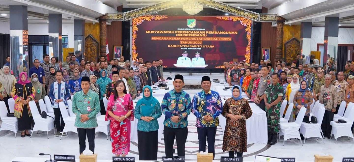 Kabarbanuakita.com, Muara Teweh – Pemerintah Kabupaten Barito Utara resmi memulai tahapan krusial dalam siklus perencanaan pembangunan daerah. Bertempat di Gedung Balai Antang, Muara Teweh, Kamis (05/03/2026), Bupati Barito Utara, H. Shalahuddin, ST., M.T., membuka secara resmi Musrenbang RKPD 2027 Barito Utara. Forum ini menjadi ruang krusial untuk menyelaraskan usulan masyarakat dengan arah kebijakan pemerintah guna memastikan pembangunan tahun 2027 memiliki fondasi yang kuat dan tepat sasaran.